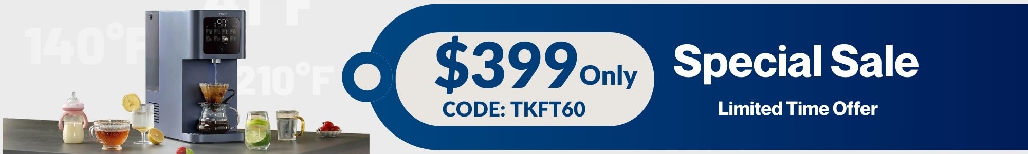 1600W thick-film heating element, which delivers unmatched hot water performance. With just a click of a button, choose from 6 precise temperature settings, ranging from 140°F to 210°F, and enjoy your piping hot beverage in a mere 3 seconds—perfect for a delicious morning brew or a soothing cup of tea.